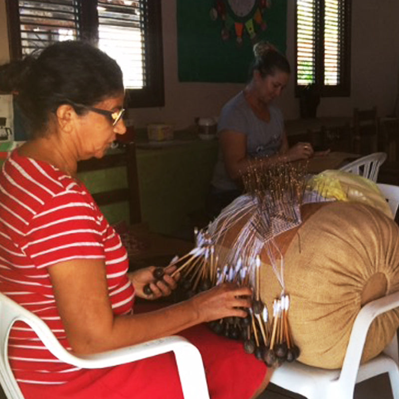 de 56 mulheres que produzem nossa renda feita à mão, no município da Raposa, no Maranhão, um saber ancestral passado de mãe pra filha. a técnica é originalmente Italiana e foi trazida pelos Portugueses, mas já faz parte da cultura do litoral Brasileiro e por aqui no Nordeste, ganhou características únicas.